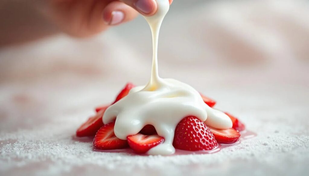 Mettete le fragole nel bicchiere del frullatore insieme al succo di limone e a metà dello zucchero a velo (30 g). Frullate a velocità alta per circa 60 secondi, fino a ottenere una purea liscia e di un rosso intenso. Il succo di limone svolge due funzioni: ravviva il colore della frutta grazie alla sua acidità e bilancia la dolcezza, evitando che la crema risulti stucchevole. Se volete una texture particolarmente setosa — priva di qualsiasi semino — passate la purea attraverso un colino a maglie fini premendo con il dorso di un cucchiaio. Non è obbligatorio, ma fa la differenza in termini di eleganza al palato. Mettete la coulis in frigorifero mentre preparate la base cremosa.